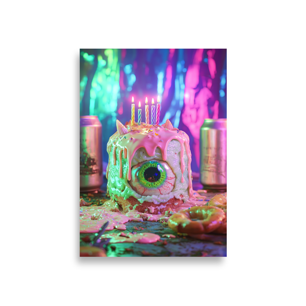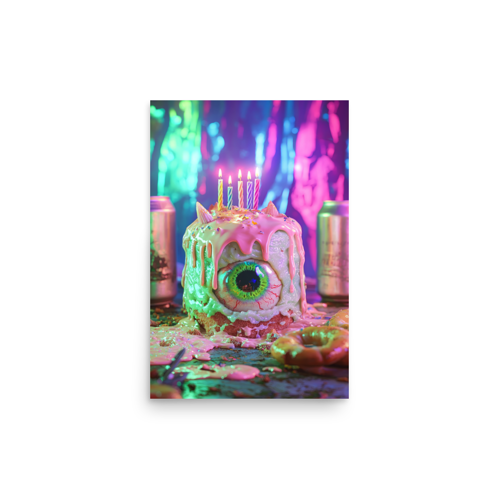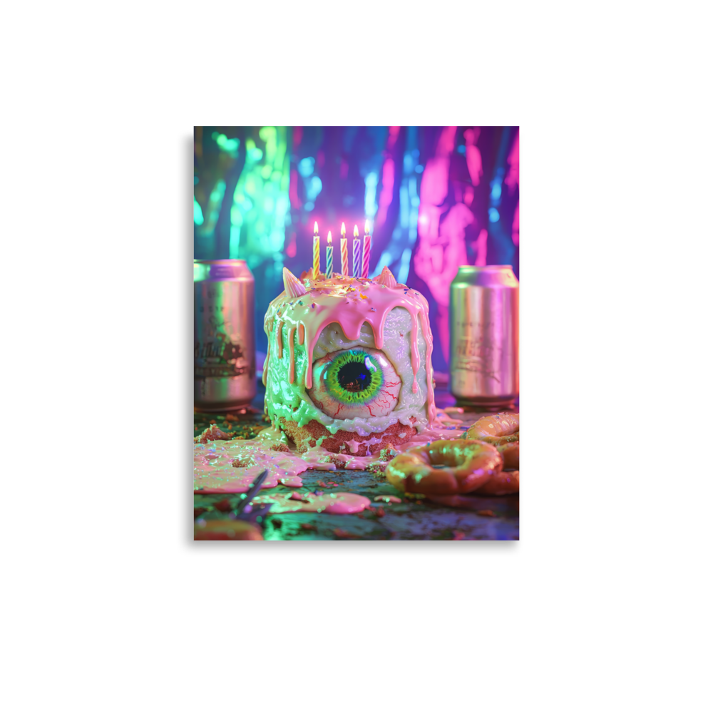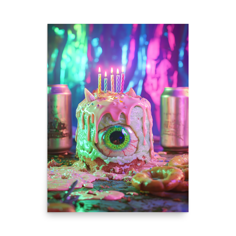 Glossed & Frosted #11 – Eye Candy is a pop-surreal fever dream where frosting meets fascination — a hypnotic confection crowned with a single glossy eye that sees straight into your sugary soul.