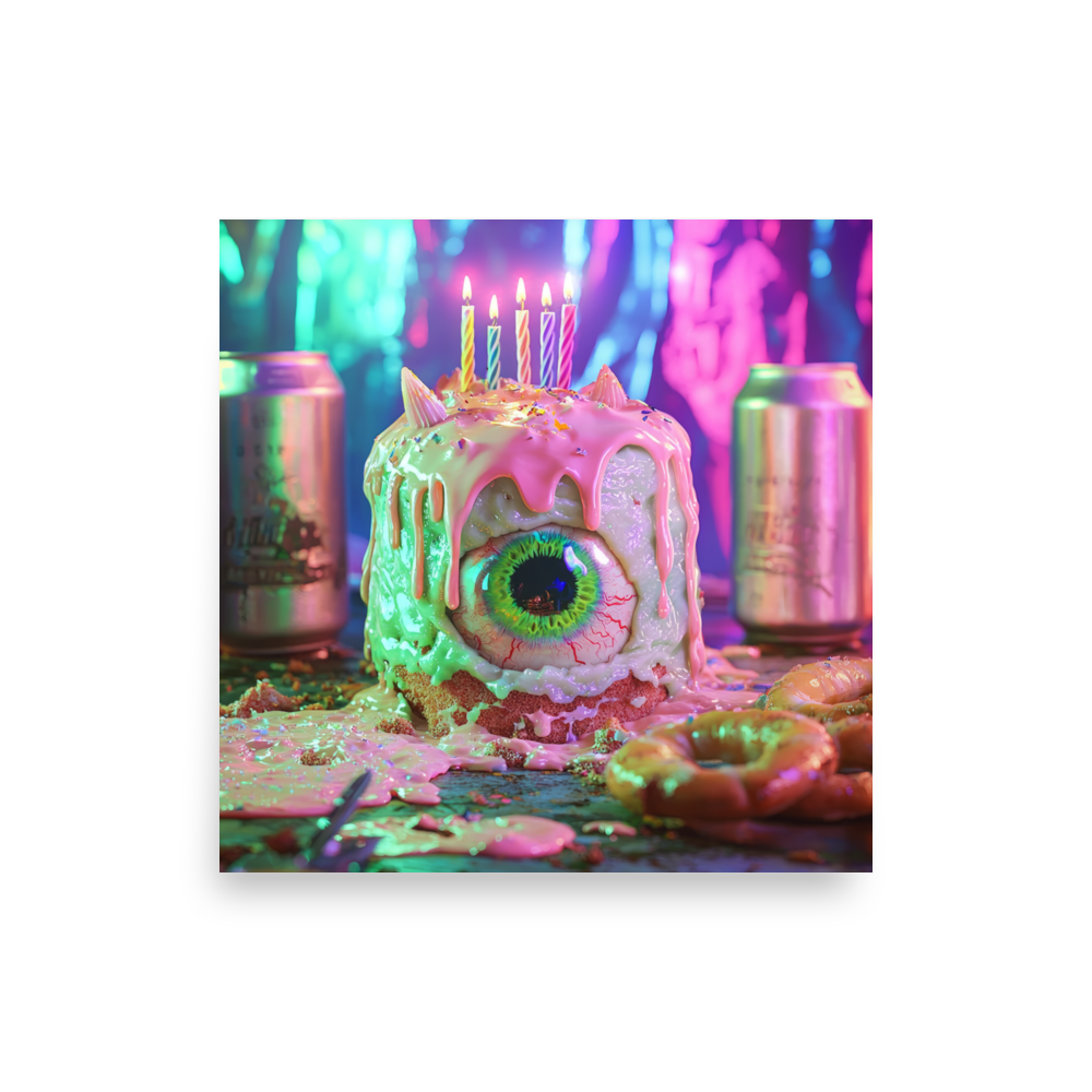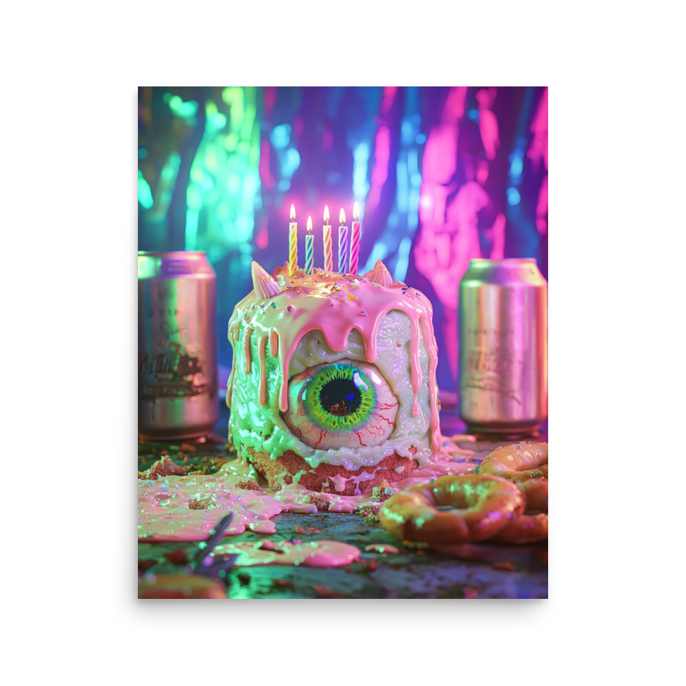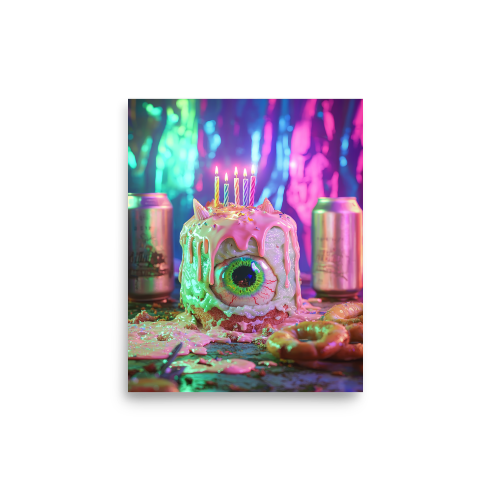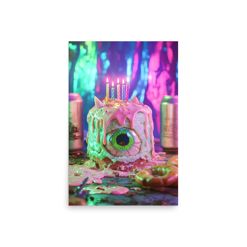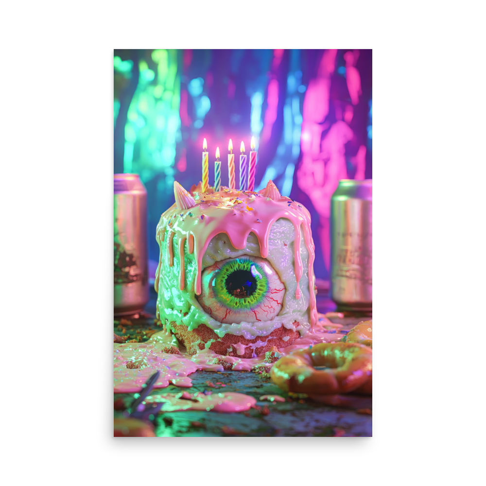 Glossed & Frosted #11 – Eye Candy is a pop-surreal fever dream where frosting meets fascination — a hypnotic confection crowned with a single glossy eye that sees straight into your sugary soul.