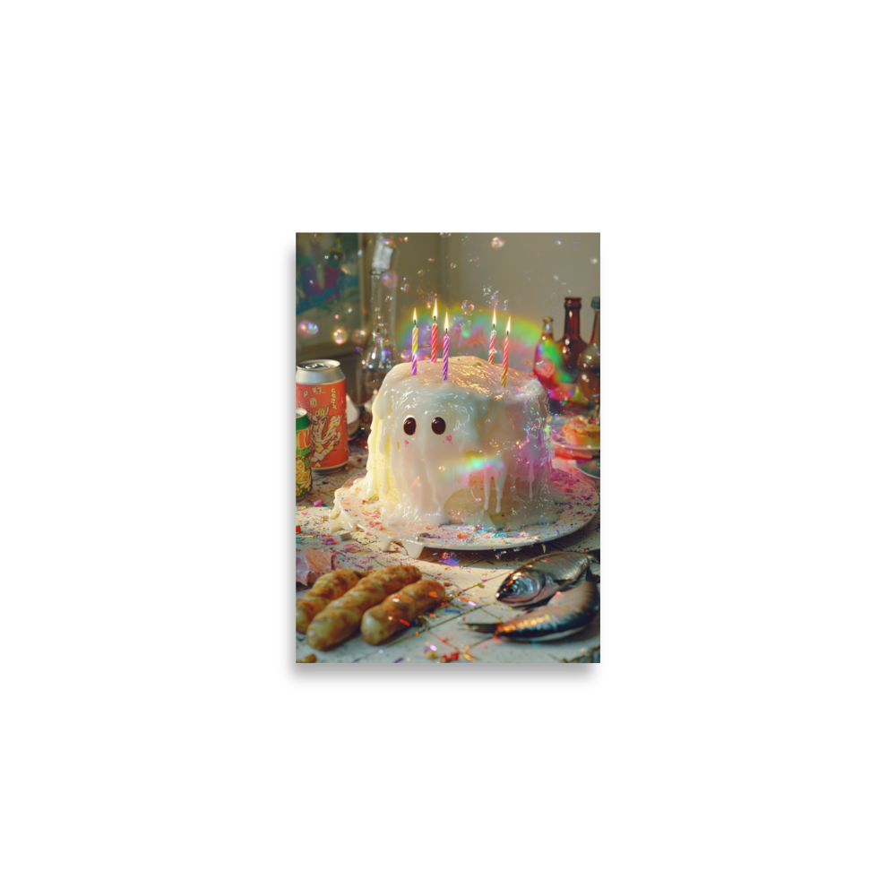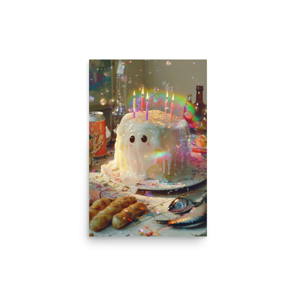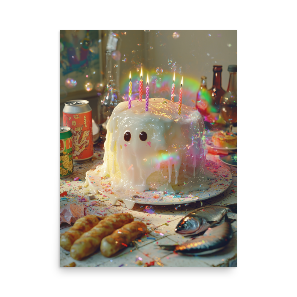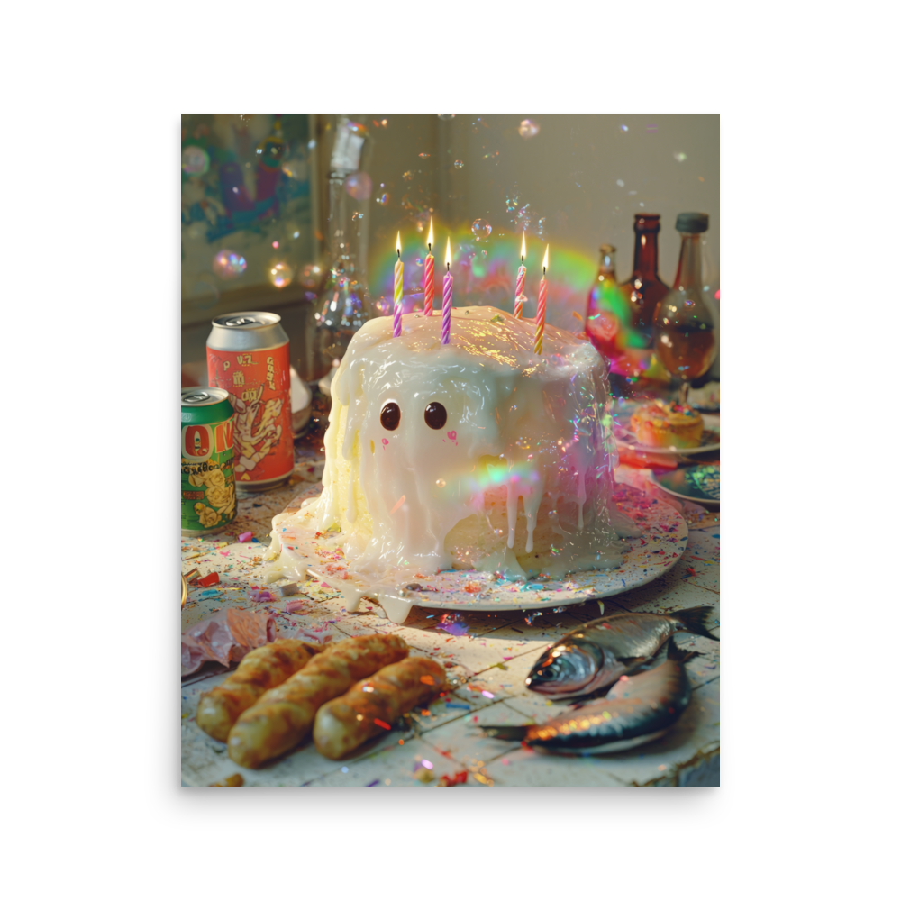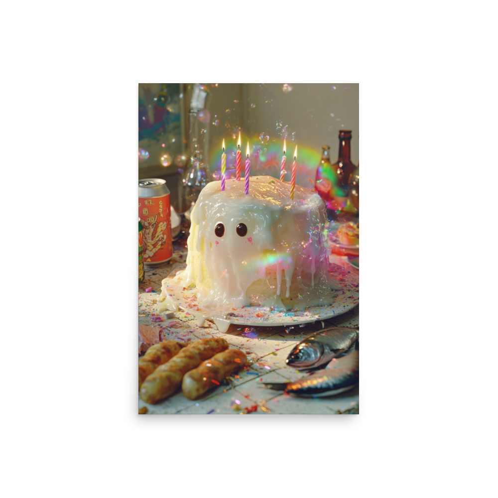 Created by The Creative AI Whisperer, Ai-ngelina Mi Lajki, this glossy pop-art print is both eerie and enchanting — soft, spectral, and sprinkled with nostalgia. A playful wink to the afterlife of indulgence and the beauty of things that linger.