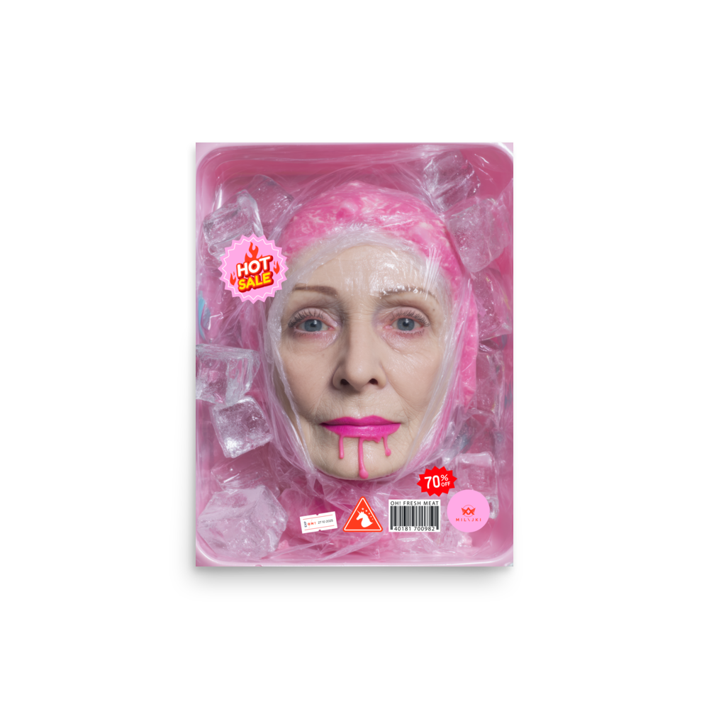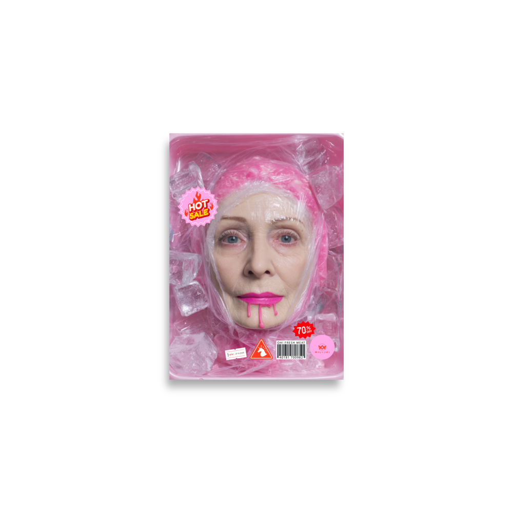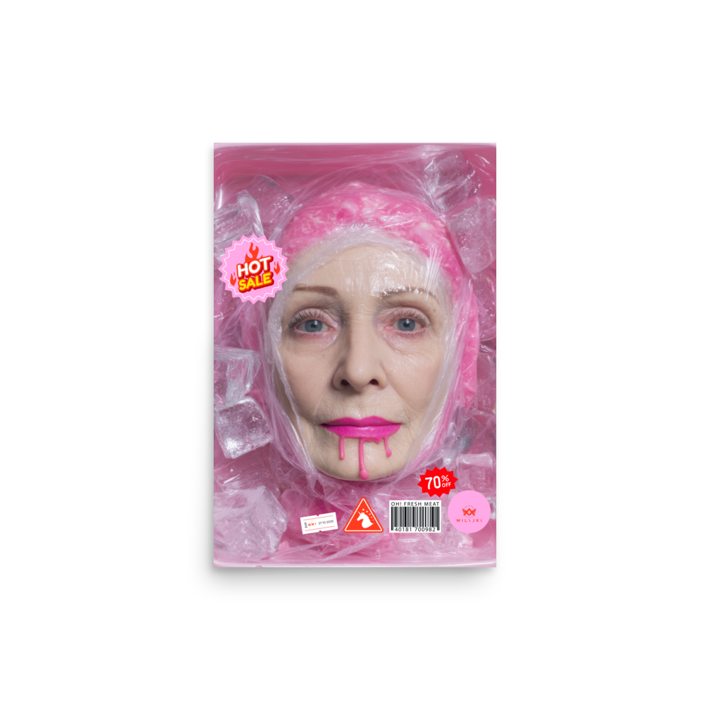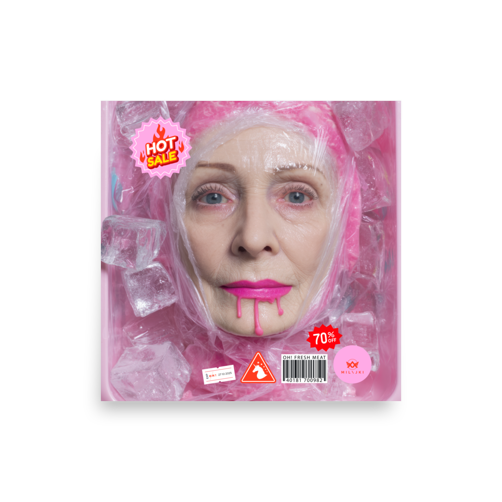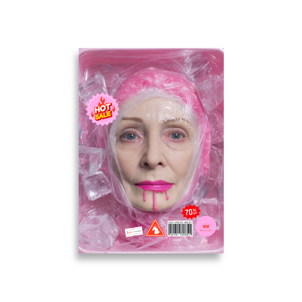 RainbOH!w Nursing Home: Vol. 2 – Fresh Meat – Vanity Insanity is a limited-edition AI art print by The Creative AI Whisperer, Ai-ngelina Mi Lajki — a surreal love letter (and middle finger) to the cult of eternal youth.