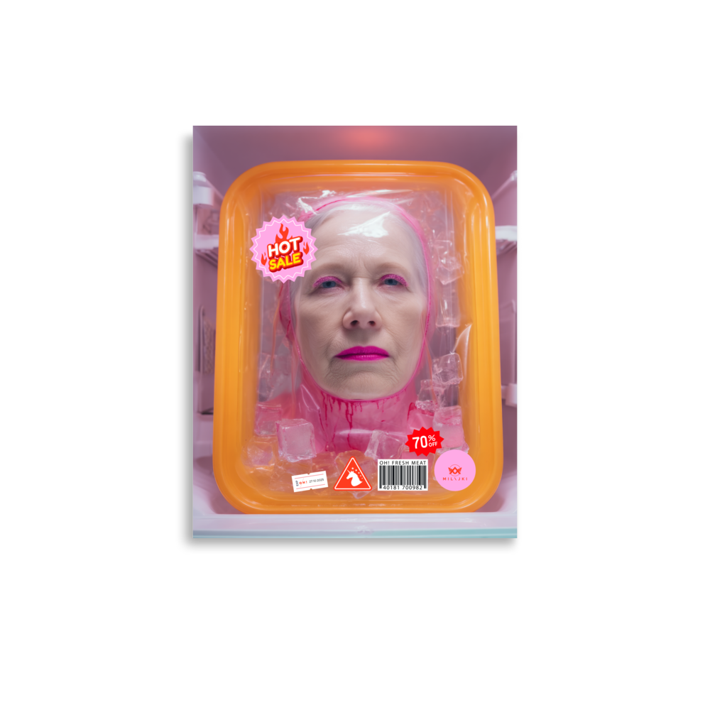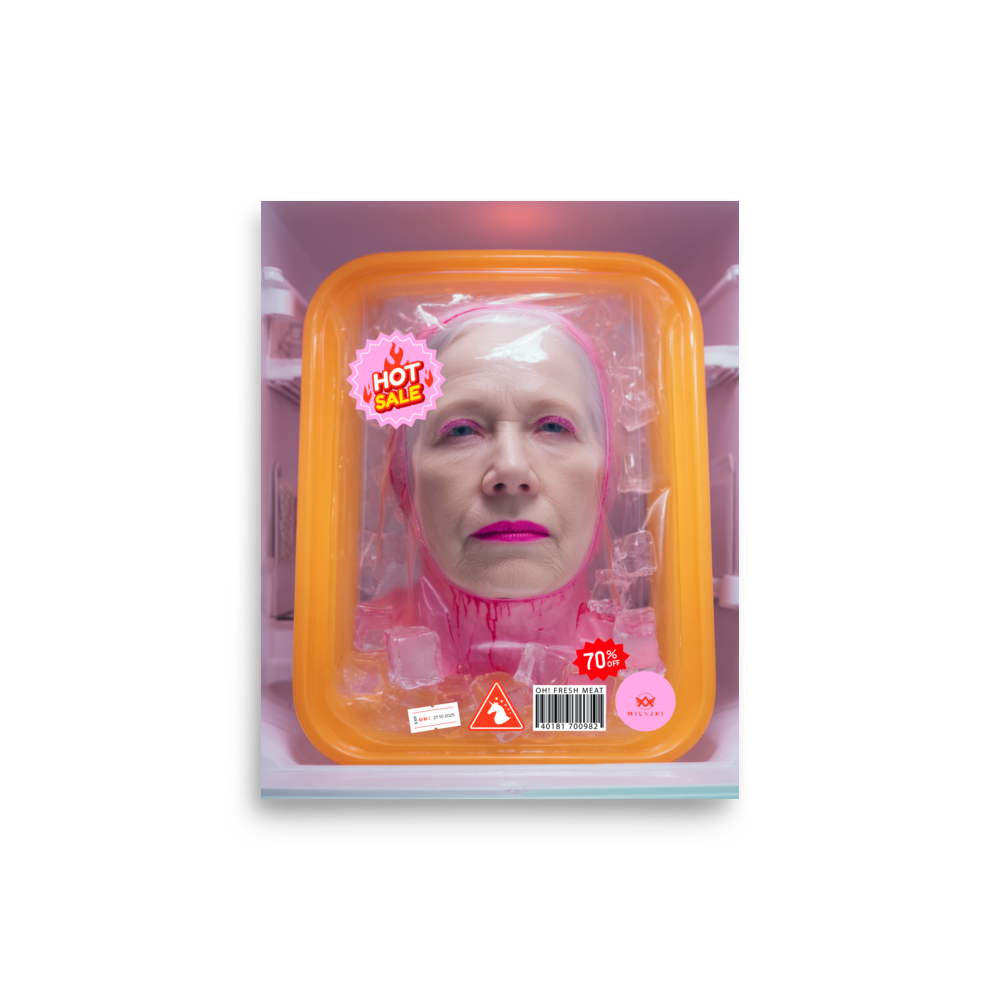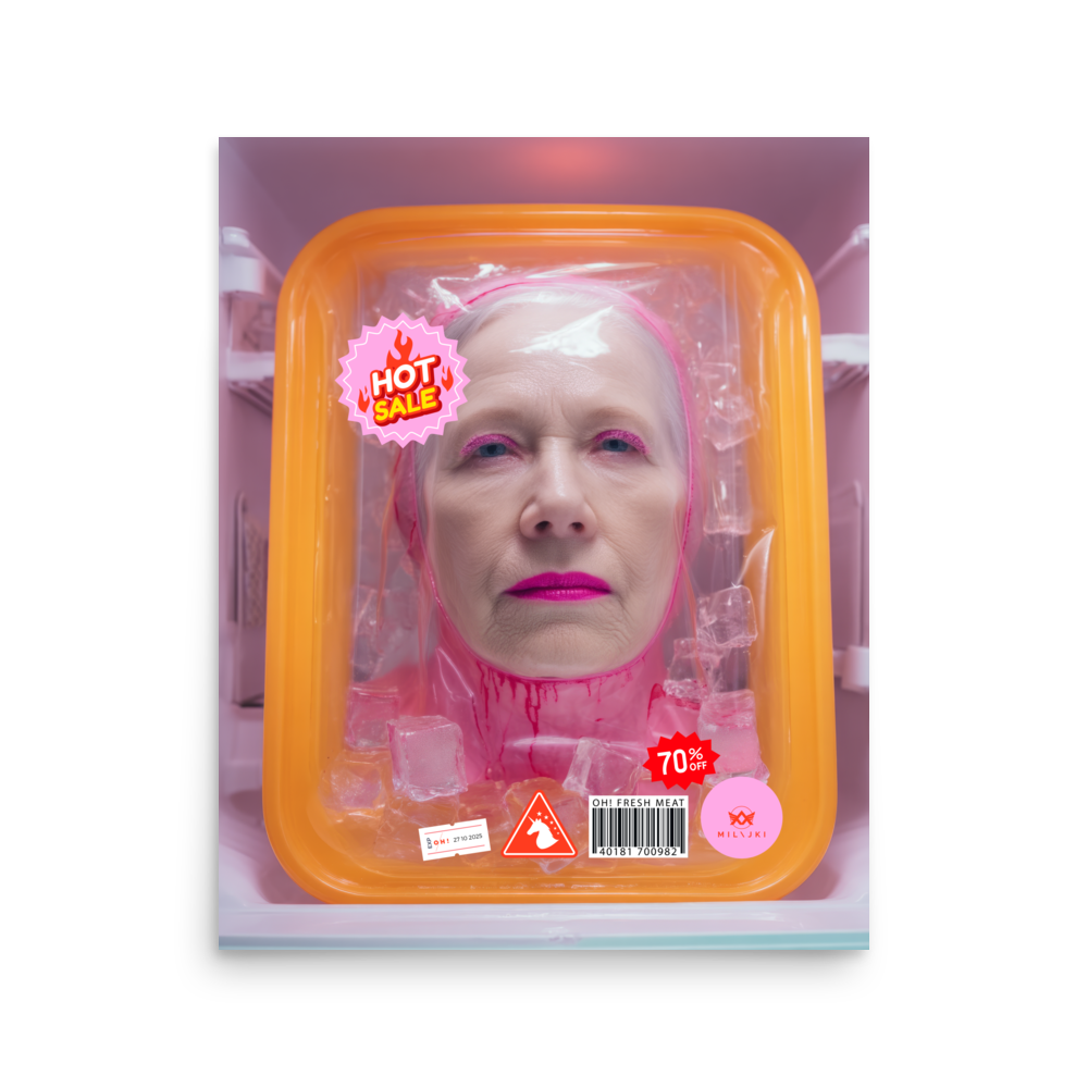 RainbOH!w Nursing Home: Vol. 2 – Fresh Meat – Vanity Insanity is a limited-edition AI art print by The Creative AI Whisperer, Ai-ngelina Mi Lajki — a surreal love letter (and middle finger) to the cult of eternal youth.