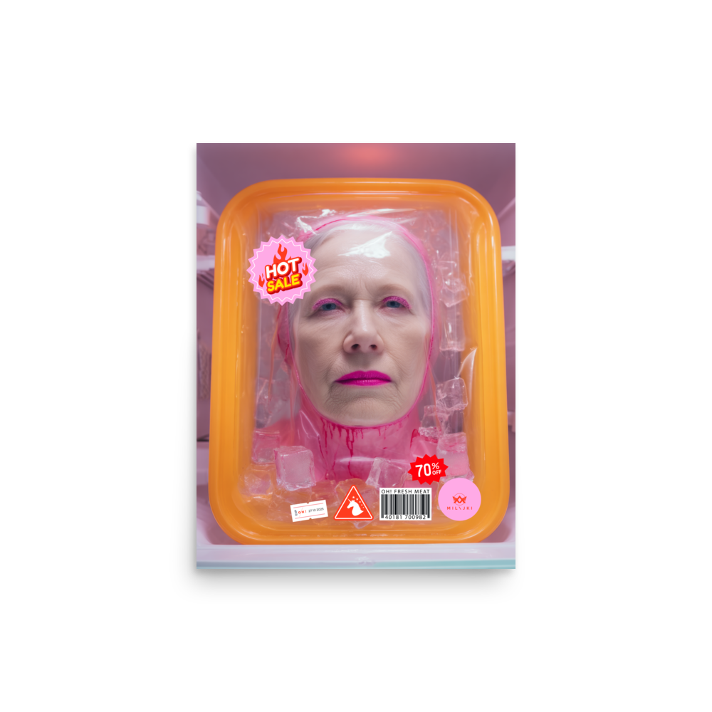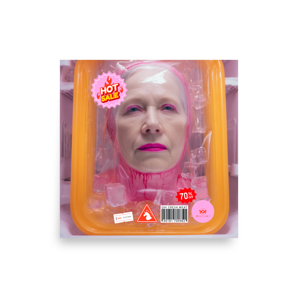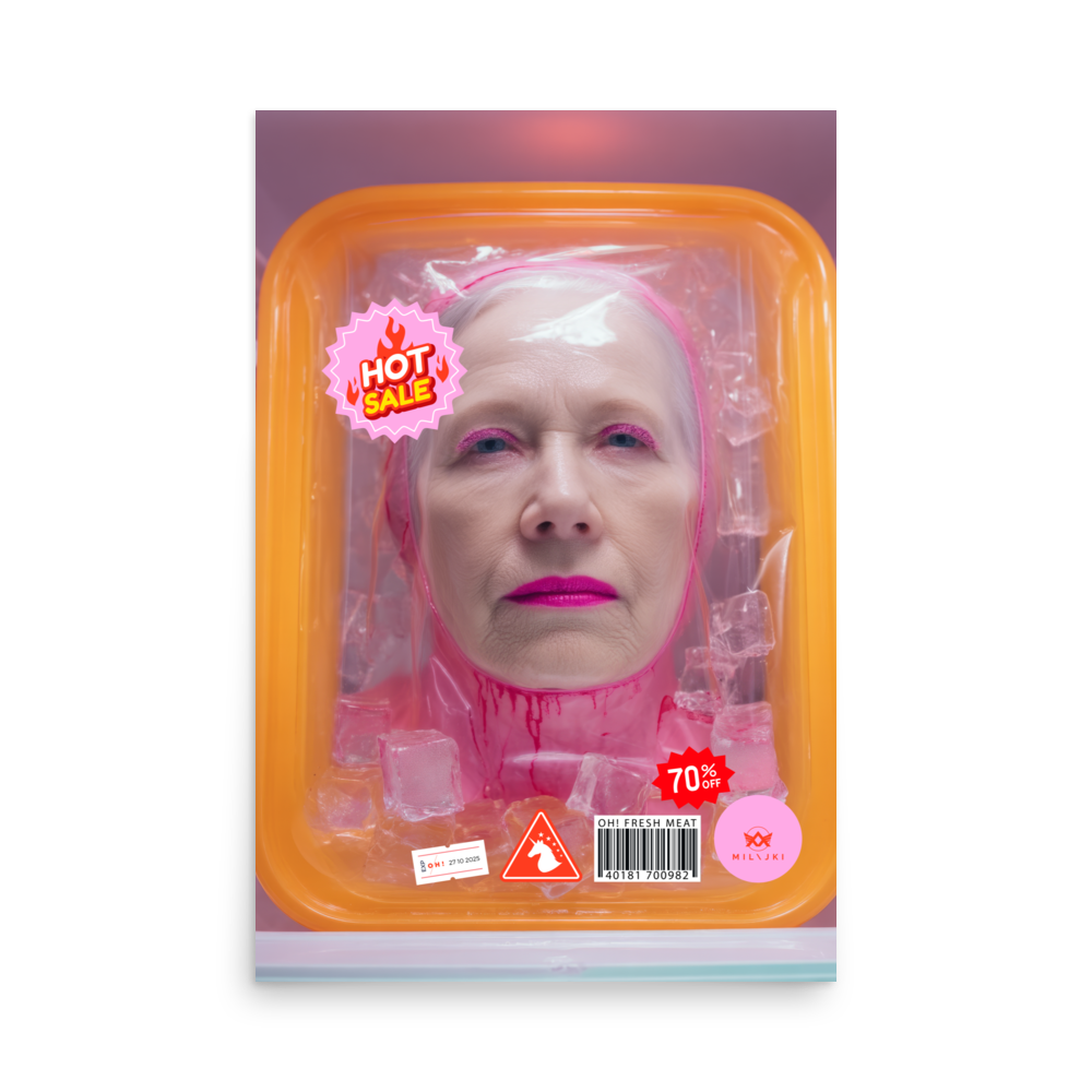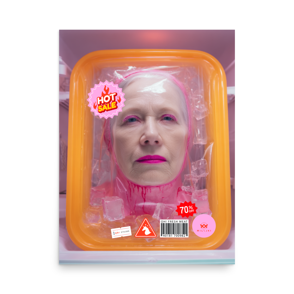 RainbOH!w Nursing Home: Vol. 2 – Fresh Meat – Vanity Insanity is a limited-edition AI art print by The Creative AI Whisperer, Ai-ngelina Mi Lajki — a surreal love letter (and middle finger) to the cult of eternal youth.