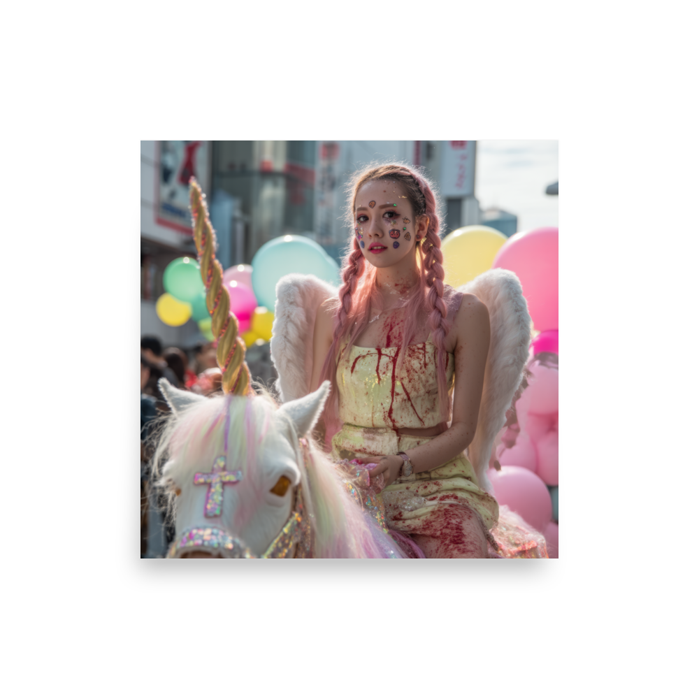 Each print captures a fallen fragment from the HallOH!ween Glitter Parade in TokyOH! — where faith turns fluorescent and chaos becomes divine couture.