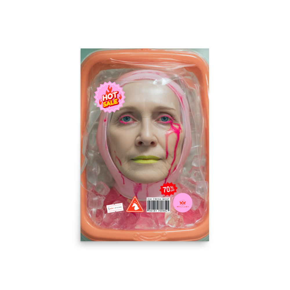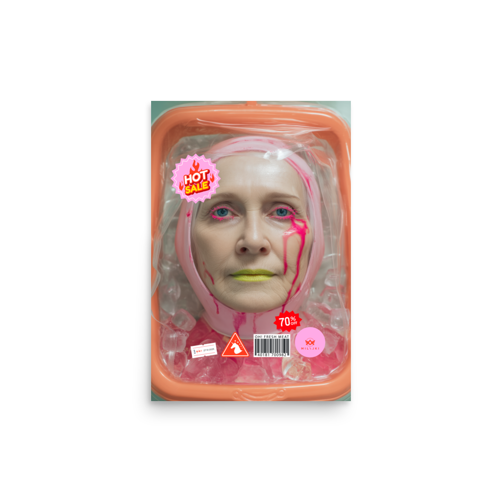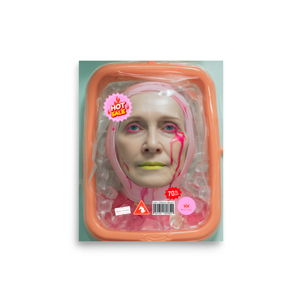 RainbOH!w Nursing Home: Vol. 2 – Fresh Meat – Vanity Insanity is a limited-edition AI art print by The Creative AI Whisperer, Ai-ngelina Mi Lajki — a surreal love letter (and middle finger) to the cult of eternal youth.
