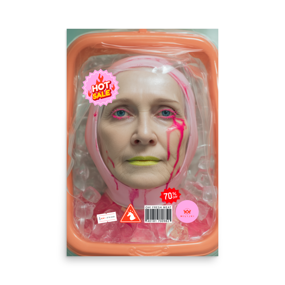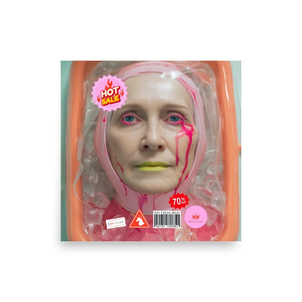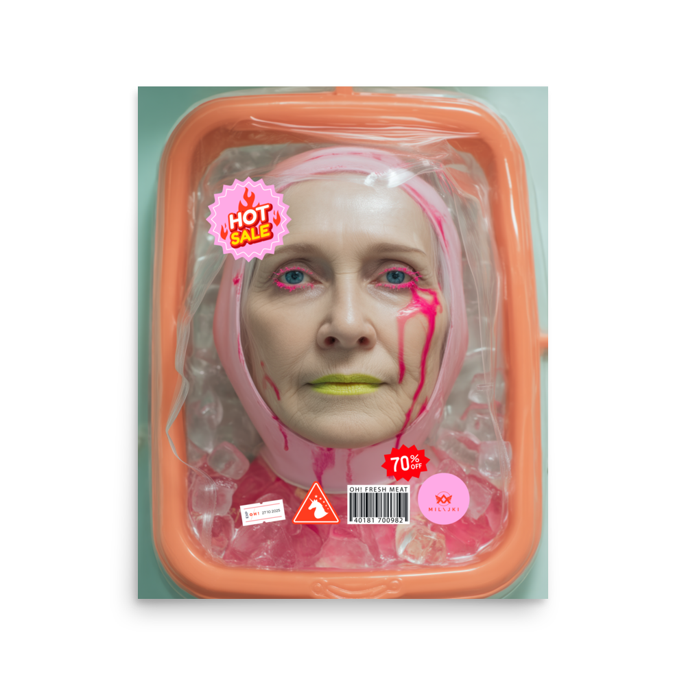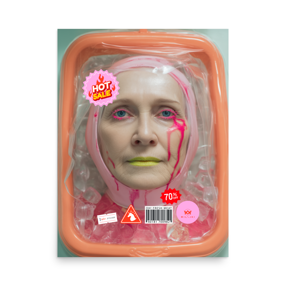 RainbOH!w Nursing Home: Vol. 2 – Fresh Meat – Vanity Insanity is a limited-edition AI art print by The Creative AI Whisperer, Ai-ngelina Mi Lajki — a surreal love letter (and middle finger) to the cult of eternal youth.