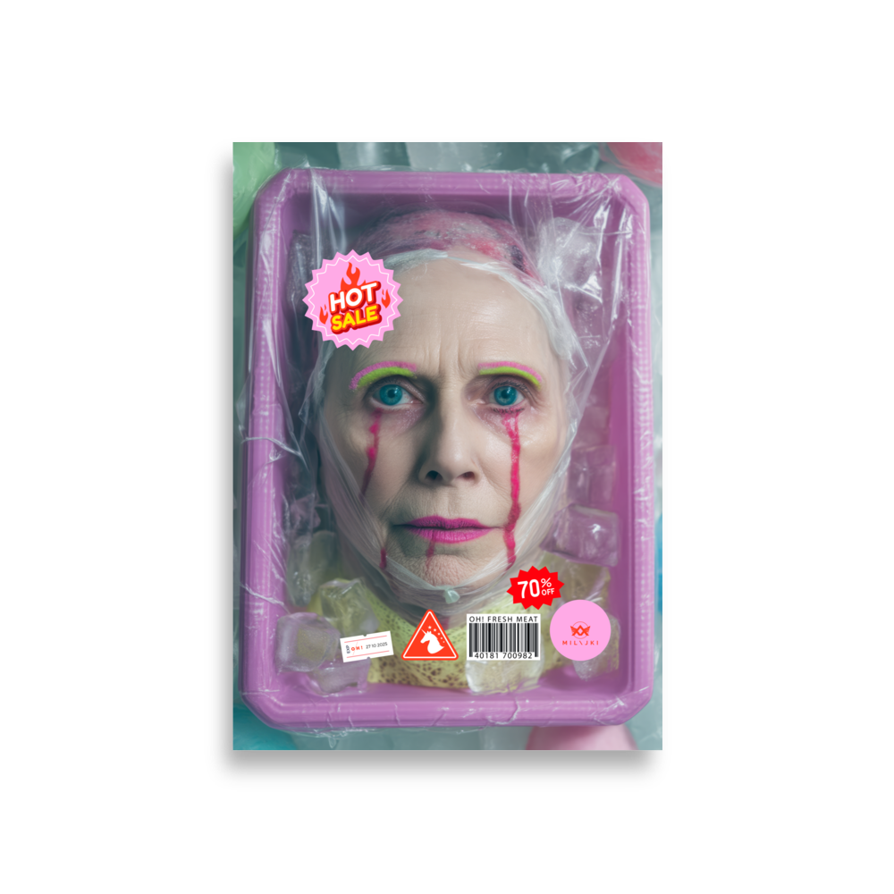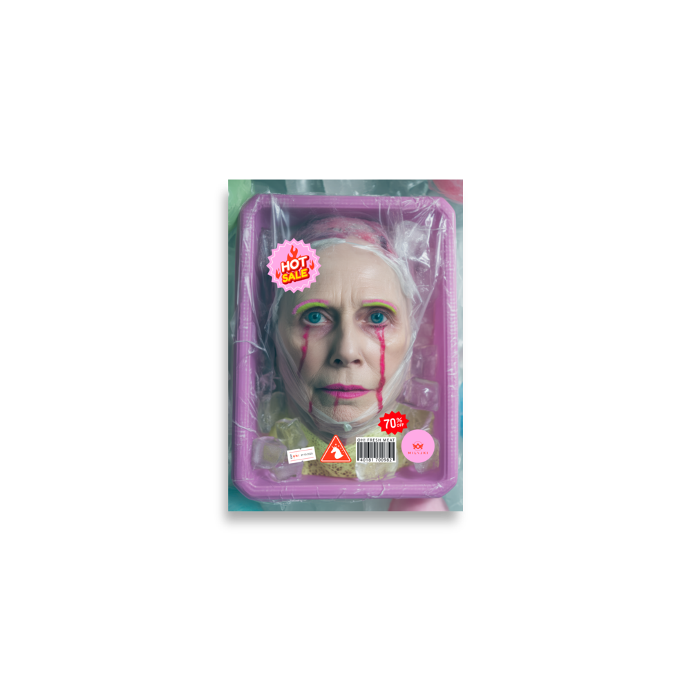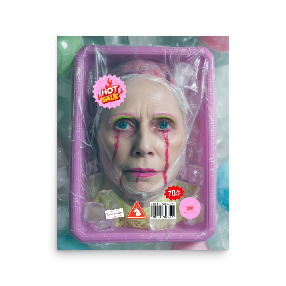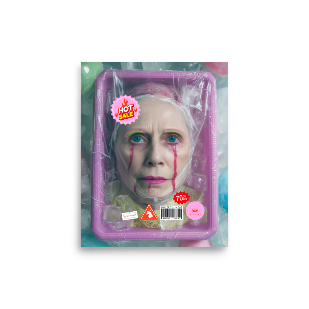 RainbOH!w Nursing Home: Vol. 2 – Fresh Meat – Vanity Insanity is a limited-edition AI art print by The Creative AI Whisperer, Ai-ngelina Mi Lajki — a surreal love letter (and middle finger) to the cult of eternal youth.