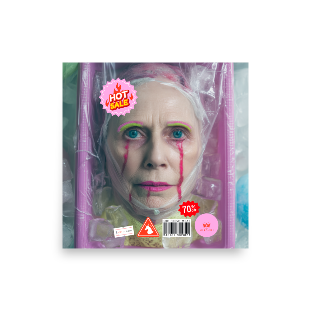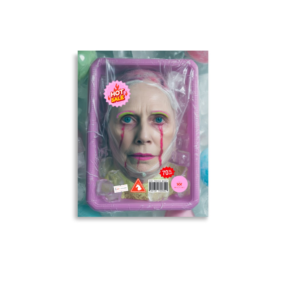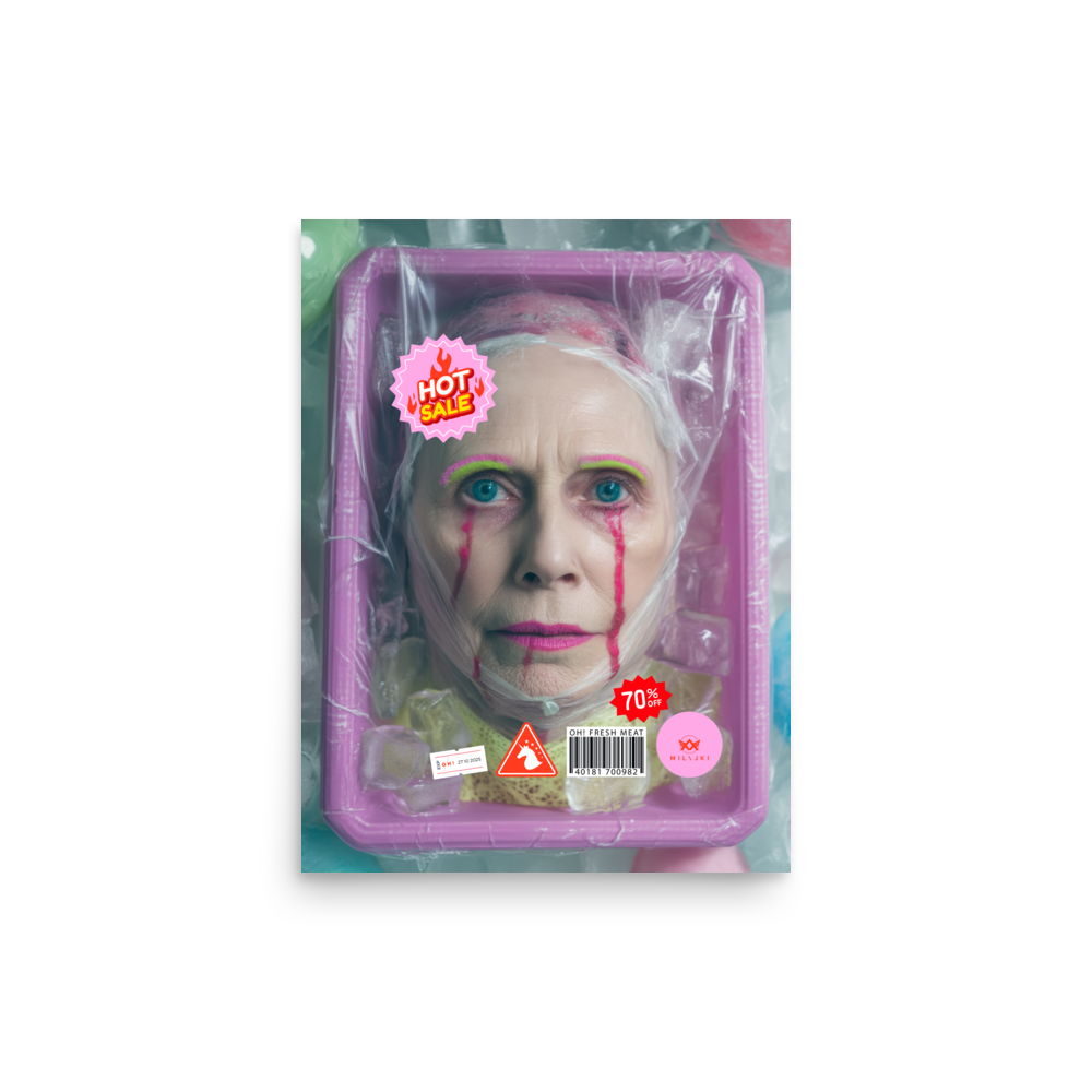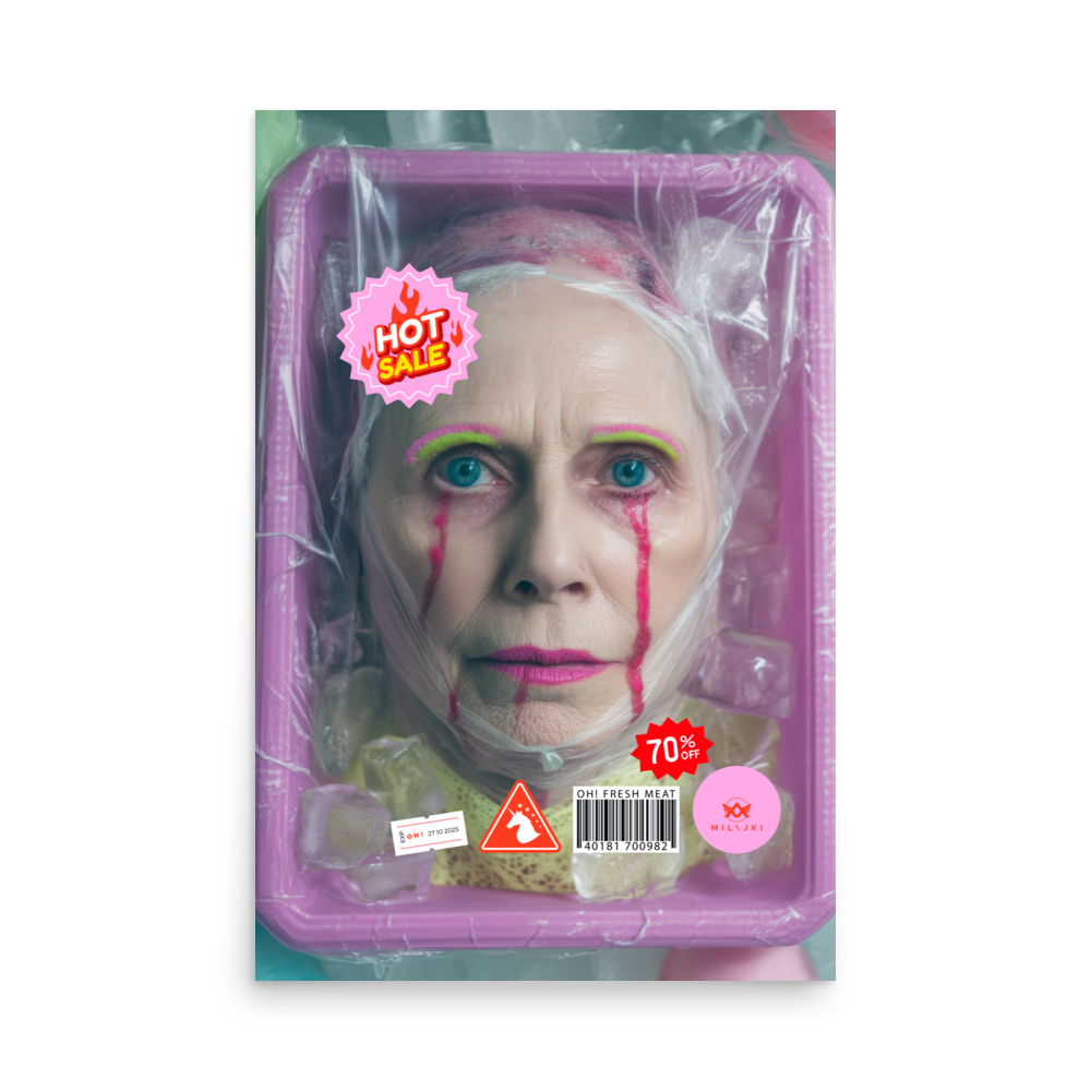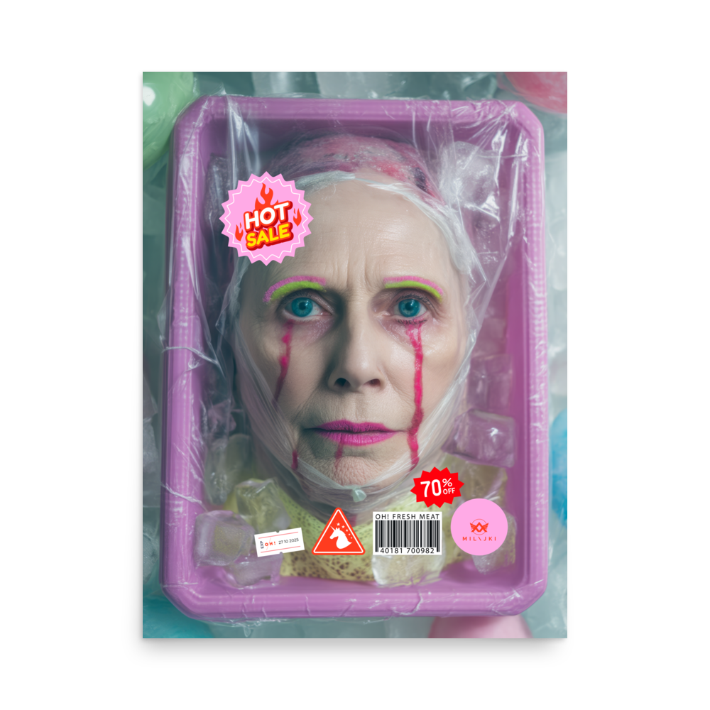 RainbOH!w Nursing Home: Vol. 2 – Fresh Meat – Vanity Insanity is a limited-edition AI art print by The Creative AI Whisperer, Ai-ngelina Mi Lajki — a surreal love letter (and middle finger) to the cult of eternal youth.