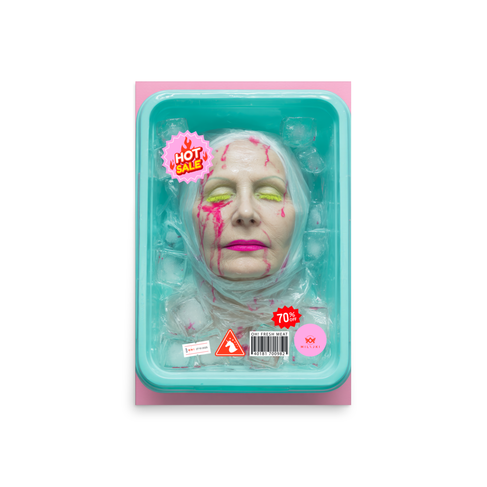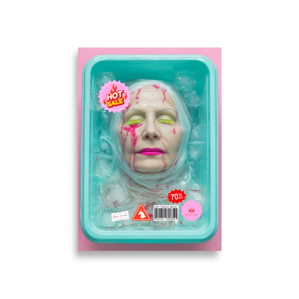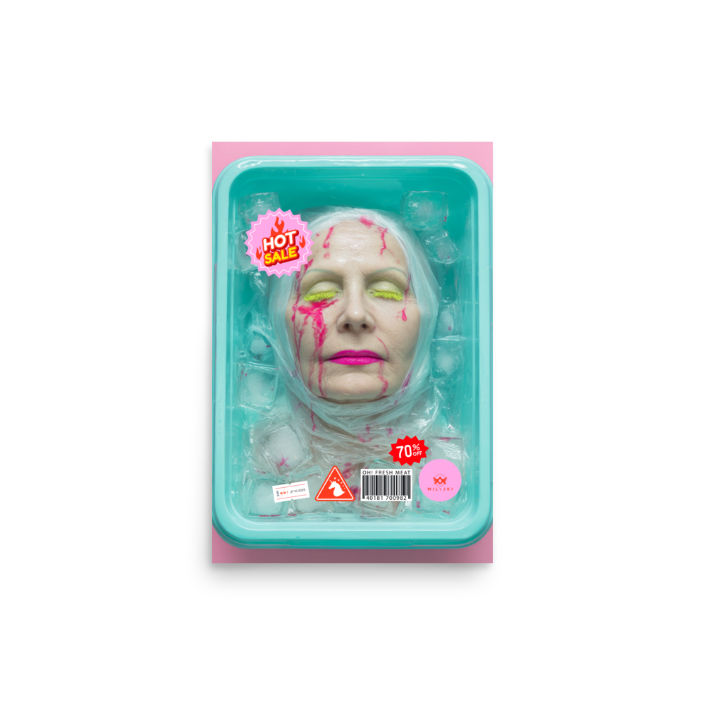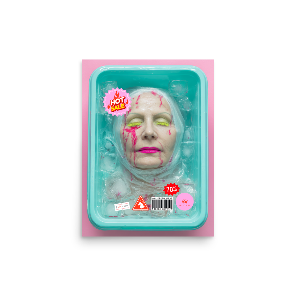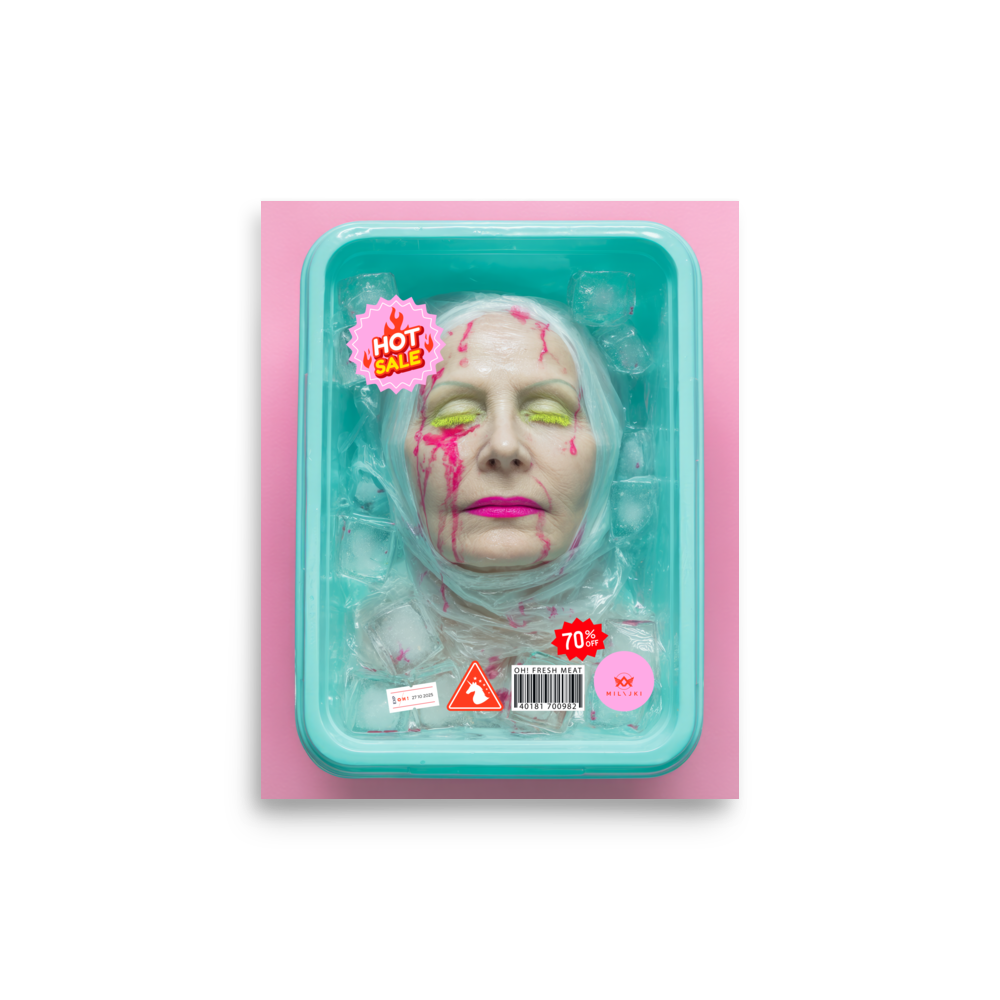 RainbOH!w Nursing Home: Vol. 2 – Fresh Meat – Vanity Insanity is a limited-edition AI art print by The Creative AI Whisperer, Ai-ngelina Mi Lajki — a surreal love letter (and middle finger) to the cult of eternal youth.