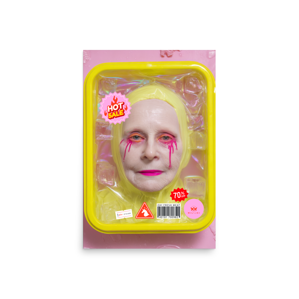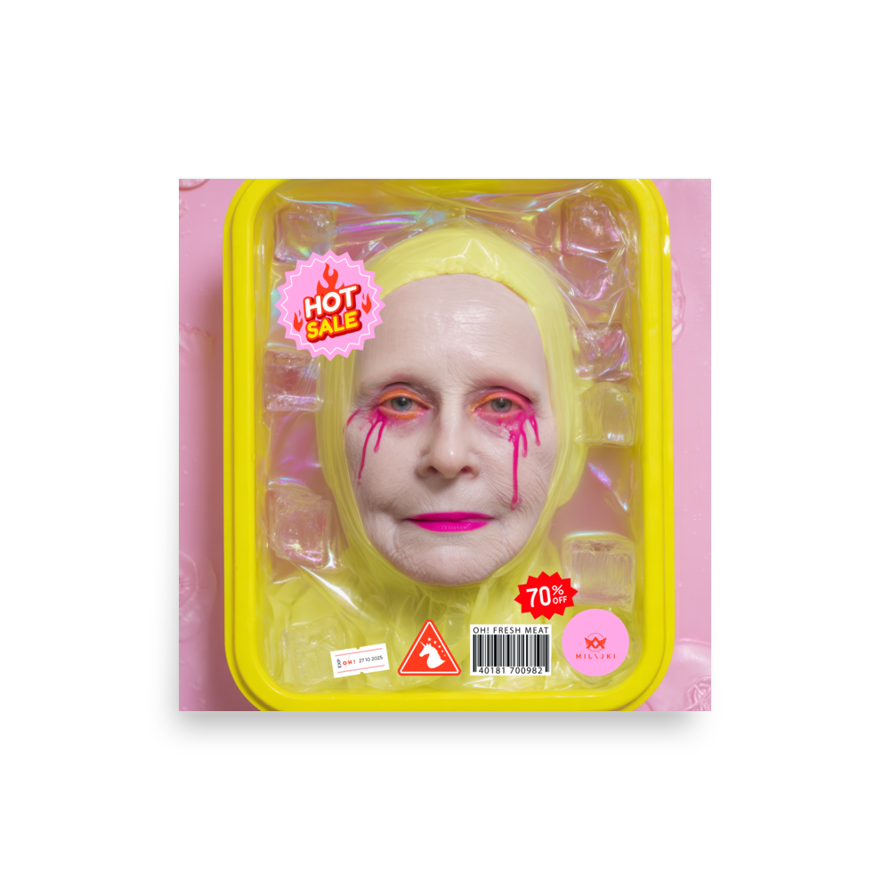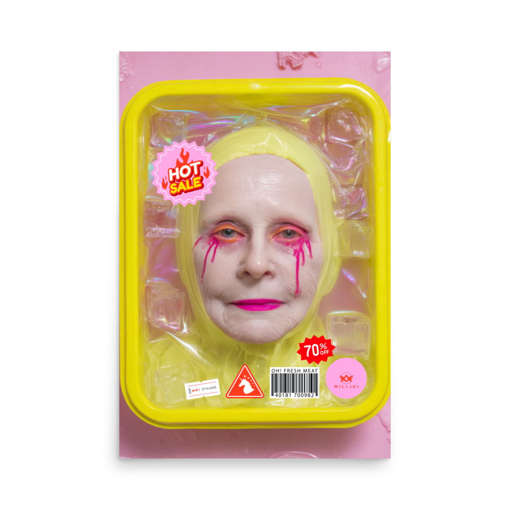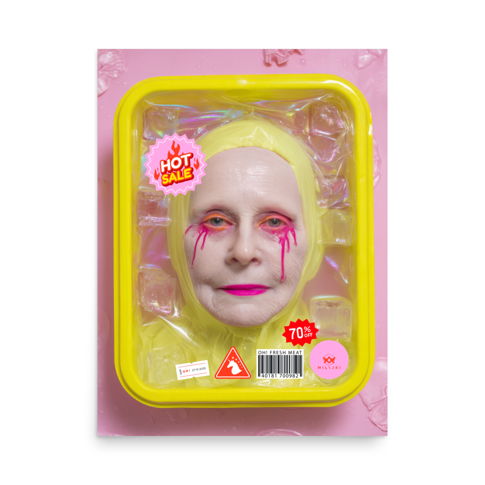 RainbOH!w Nursing Home: Vol. 2 – Fresh Meat – Vanity Insanity is a limited-edition AI art print by The Creative AI Whisperer, Ai-ngelina Mi Lajki — a surreal love letter (and middle finger) to the cult of eternal youth.
